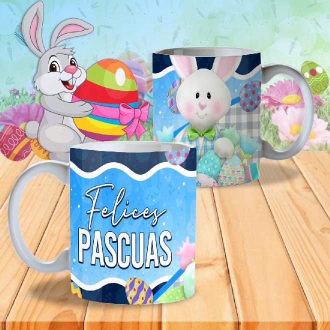 12 Plantillas Tazas Felices Pascuas