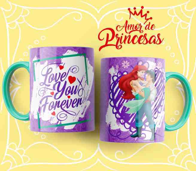 8 Plantillas Tazas Princesas Amor